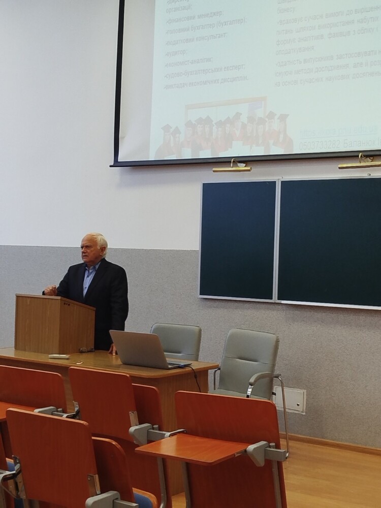 Заступник декана економічного факультету Тетяна Мигович розповіла присутнім про економічний факультет, його кадровий потенціал та можливості, про видатних випускників та активних студентів, котрі беруть участь у різноманітних заходах та отримують високі нагороди.