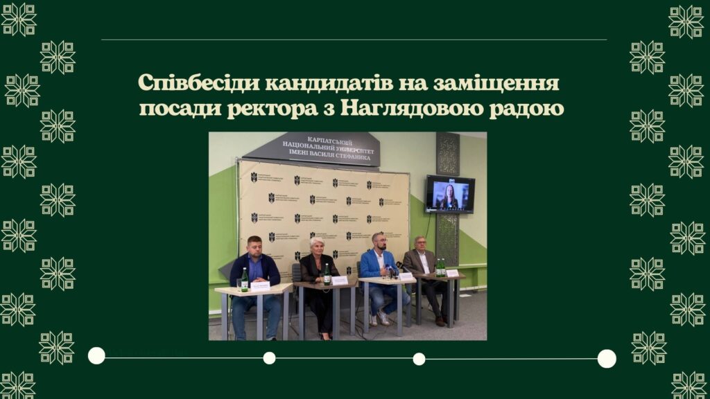 У Карпатському національному університеті імені Василя Стефаника відбулася пресконференція Наглядової ради — голови Дмитра Романюка, секретаря Яни Стадільної, Віталія Миронюка, Тараса Фінікова та Тетяни Шиппі, присвячена оголошенню результатів голосування щодо обрання ректора.