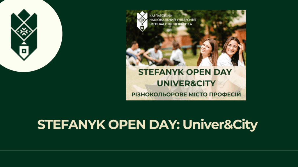 Карпатський національний університет імені Василя Стефаника запрошує учнів, батьків і педагогів на День відкритих дверей STEFANYK OPEN DAY: Univer&City! Це не просто знайомство з університетом — це можливість побачити, як навчання, наука, культура і молодіжне життя поєднуються у просторі розвитку та натхнення.