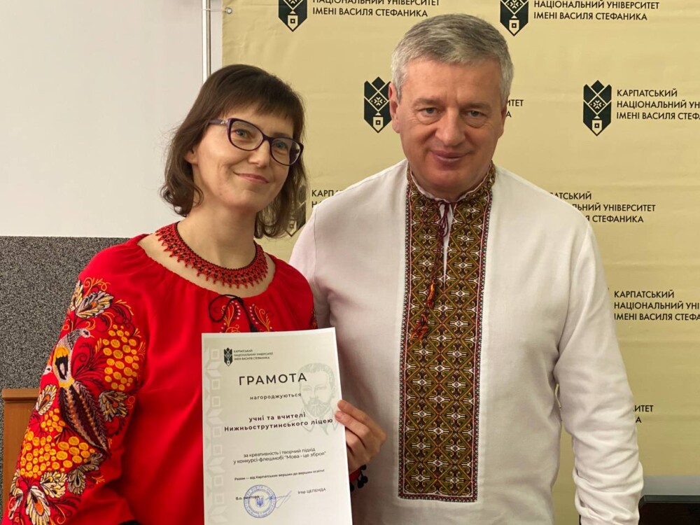 Учні та вчителі Нижньострутинського ліцею — грамота за креативність і творчий підхід (педагог-організатор — Оксана Лавришин, випускниця полоністики).